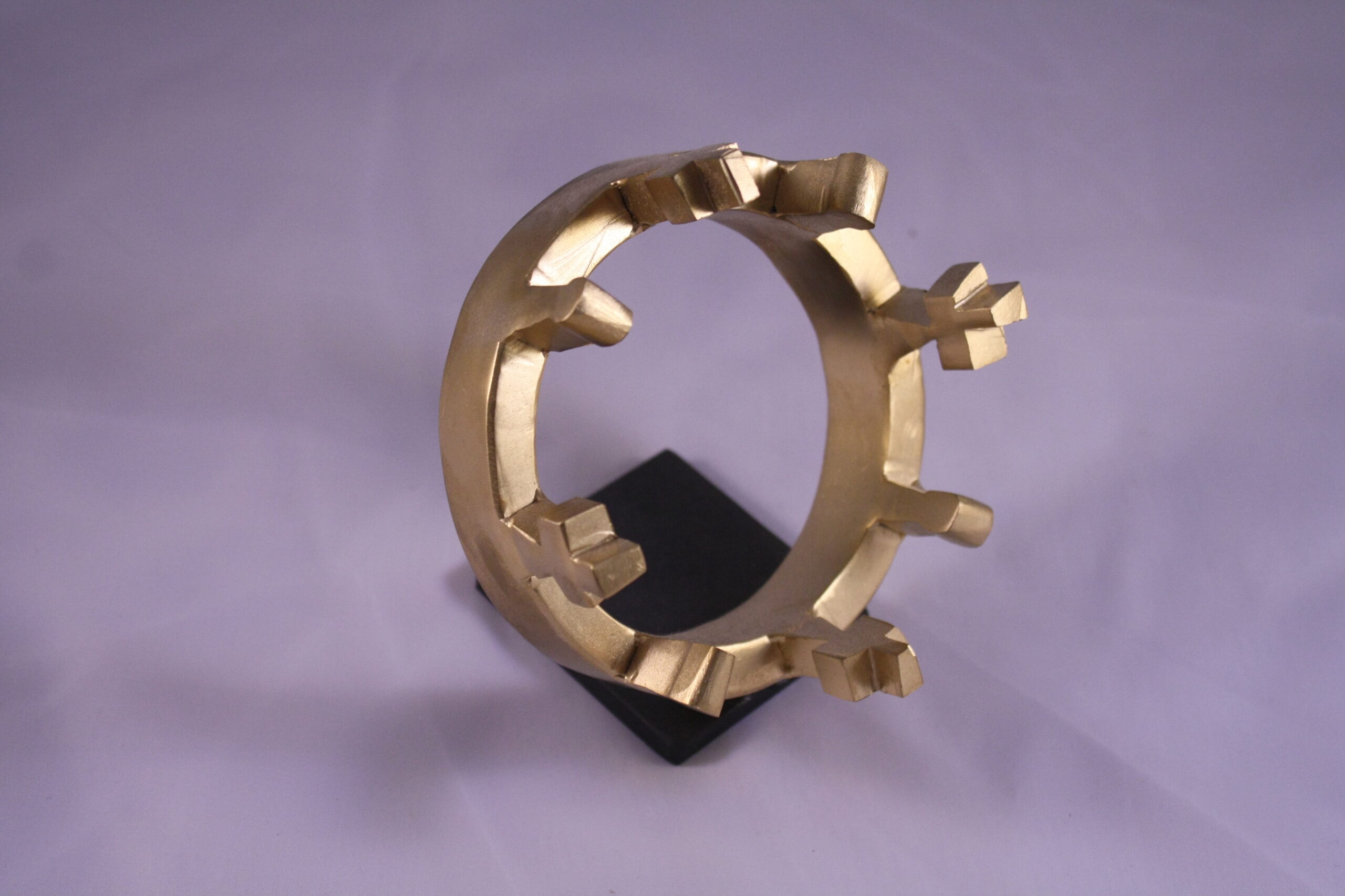Na zdjęciu przedstawiony został element służący jako jedna z części przeglądarki tkanin. Odlew ten jest już po wstępnej obróbce mechanicznej, która polegała na przetoczeniu jego dolnej części tak aby miała ona wymagane wymiary i idealnie gładką powierzchnię.