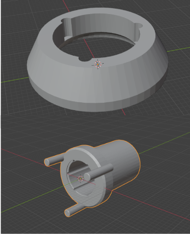 Cylindryczna tuleja wykonana metodą druku 3D z tworzywa PLA, wyposażona w trzy równomiernie rozmieszczone cylindryczne bolce na zewnętrznej powierzchni. Wewnętrzna powierzchnia tulei posiada sześć równomiernie rozmieszczonych rowków.